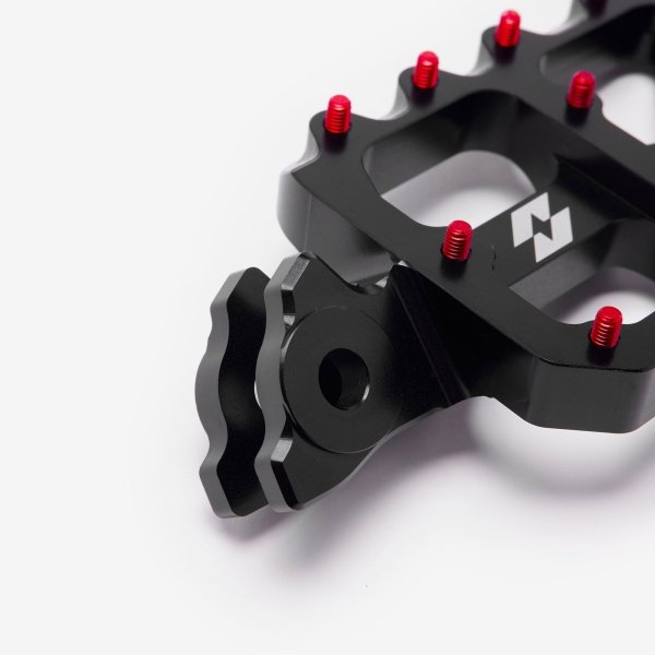 Full-E Charged Black Foot Pegs with 7075 Red Anodized Pins
